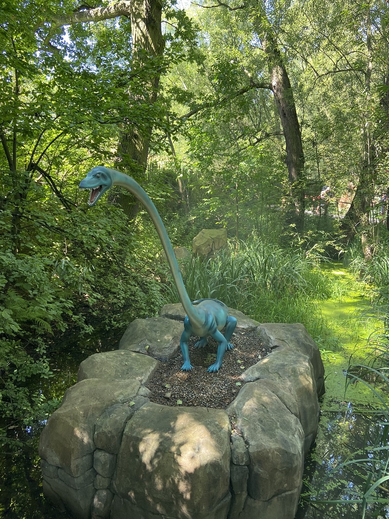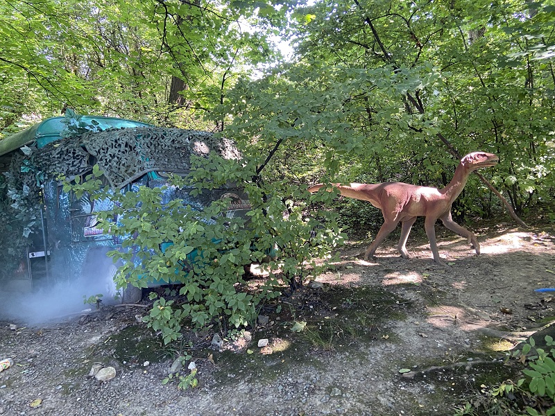 Atrakcje w cenie pakietu premium: – park ruchomych dinozaurów, który jest największy w Europie. Jego ogromną zaletą są… drzewa. Po tym jak prawie roztopiłam się w Krasiejowie, tutaj mogłam odetchnąć z ulgą. Dodatkowo są tutaj tereny podmokłe co też znacznie obniża temperaturę, można spokojnie spacerować wyznaczoną ścieżką i podziwiać ruchome dinozaury. Mamy ich ponad 100 w większości ruszających się i wydających dźwięki. Na końcu tego parku czeka na nas Muzeum Szkieletów i Skamieniałości;