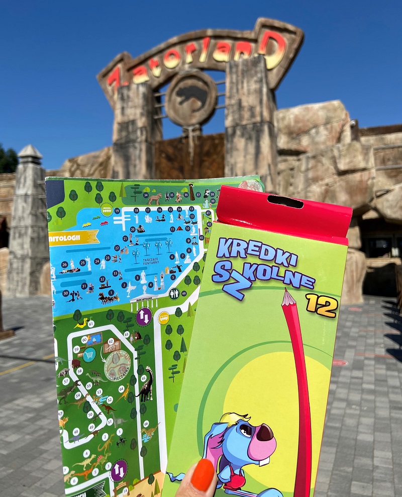 Ostatnią atrakcją o której wspomnę jest gra Wielki Odkrywca Zatorlandu. Spacerując po tematycznych parkach zbieramy pieczątki w wyznaczonych punktach na mapie. Po zebraniu wszystkich pieczątek czeka na nas mała nagroda do odebrania w sklepiku z pamiątkami, który znajduje się przy wejściu do Lunaparku. O ile sama inicjatywa jest bardzo fajna, dziecko uczy się odczytywać samo mapę, budzi się w nim odkrywca to nasza nagroda była bardzo rozczarowująca. Spodziewałam się dinozaura, no czegokolwiek co kojarzy się z tym miejscem. Jak ktoś oglądał moje InstaStory to już wie, że dostaliśmy kredki. Nie wierzę, że takiego giganta jakim jest Zatorland nie stać na podarowanie dzieciom nawet breloczka z dinozaurem/owadem/postacią z Mitologii.