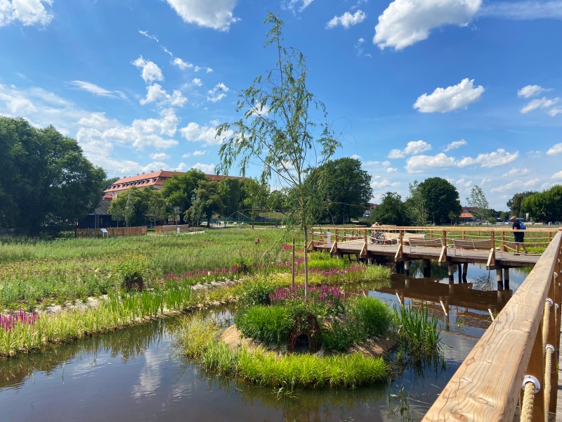 Drugą rzeczą, która mnie spodobała się najbardziej to wioska kaczek. Zresztą ja lubię mostki, rzeczki, stawy, które są ładnie zagospodarowane. Wszędzie rośnie mnóstwo kwiatów. Doczytałam, że posadzono tu specjalnie dobrane miksty roślin aby unosił się piękny zapach.