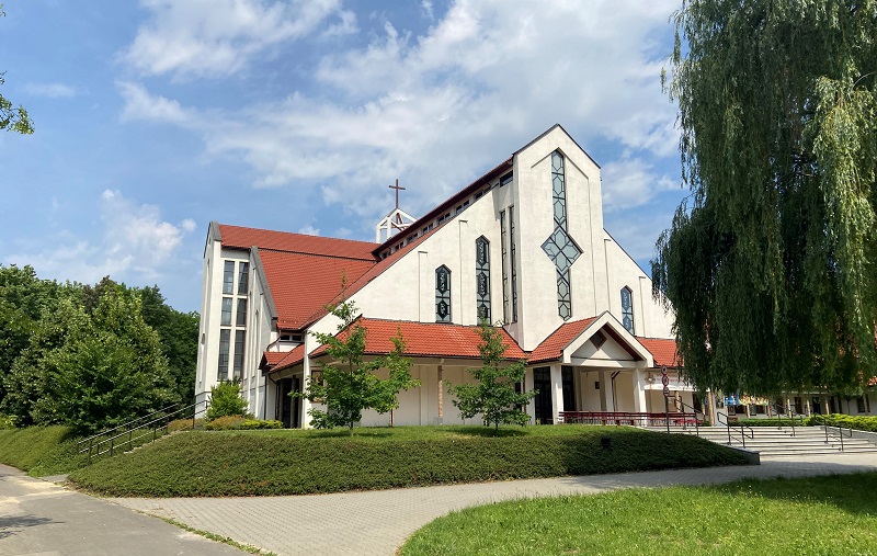 Powoli kończę mój spacer. Na końcu plant lub początku (w zależności od której strony ruszycie) znajduje się boisko do gry z koszykówkę. Trochę już zniszczone ale jak ktoś bardzo chce pograć to na pewno jakoś sobie poradzi. Po drodze mijam jeszcze Kościół św. Józefa Oblubieńca NMP, więc w niedziele w tych okolicach na pewno jest wzmożony ruch.