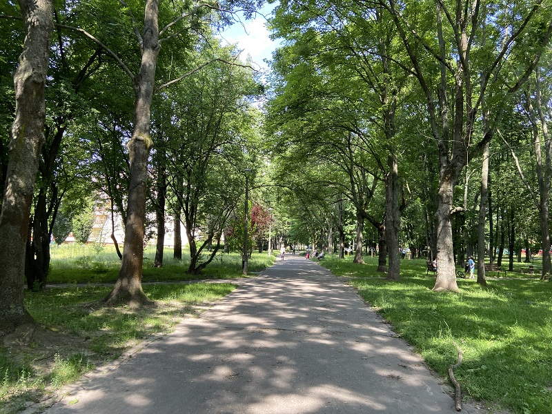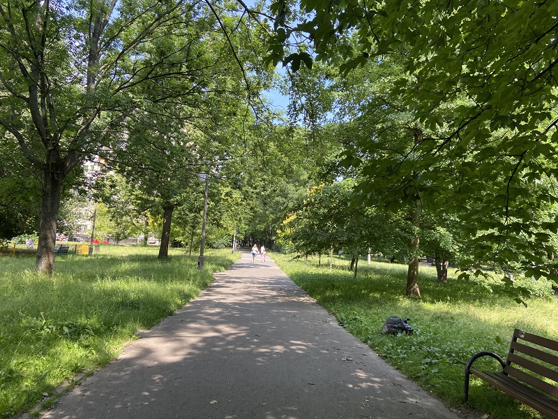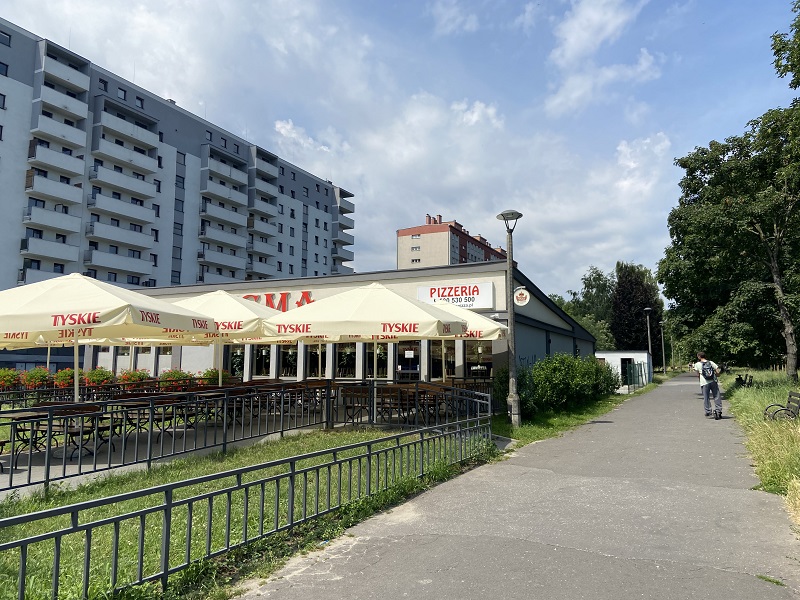 Po drodze mijam trzy otwarte siłownie, w tym jedną całkowicie zacienioną. Jako, że planty ciągną się przez osiedla macie tutaj wiele sklepów, więc nie musicie się martwić, że na przykład wody Wam zabraknie i co wtedy. Park dzielą na 3 części dwie drogi. Przechodząc przez ulice Szajnowicza-Iwanowa miniecie Biedronkę. A za nią macie cały pas mniejszych sklepów. Mijając kolejną ulicę (Broniewskiego) dzieląca park zobaczycie pizzerię Sigmę, która popołudniami jest bardzo oblegana. Biegłam tam kilka dni później i wszystkie miejsca na zewnątrz były zajęte, sądzę, że jest to bardzo dobra reklama tego miejsca.