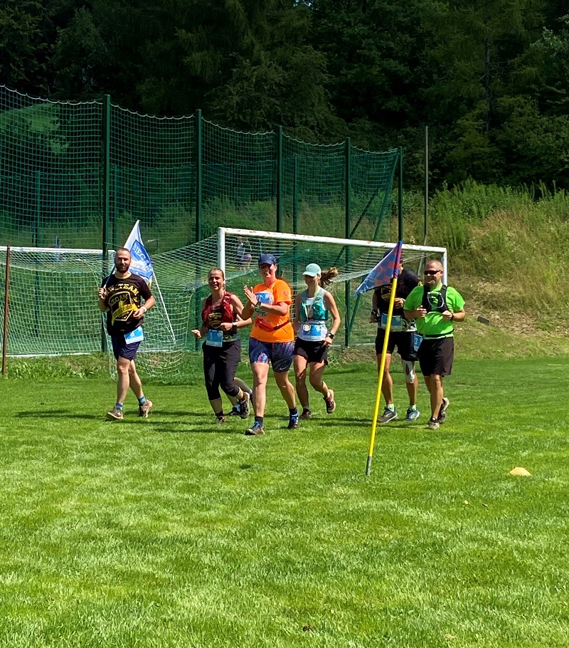 Nie doczytałam, że to jest bieg typu górskiego i miałam lekkie zdziwko przed startem gdy usłyszałam co usłyszałam. Przy biegach typu górskiego w regulaminach są profile tras czego tu nie było, zatem uznałam, że to po prostu trasa terenowa. Dałam trasie 4 punkty ponieważ na krótszym dystansie niestety przeważa asfalt. Gdyby to była droga szutrowa albo w większości terenowa byłoby super i stopy by mniej bolały. Założyłam swoje buty terenowe i w sumie nie wiem czy to był błąd czy nie. Organizator zalecał takie obuwie na tym dystansie, więc założyłam. Jednak jak ktoś nie biegnie na czas tylko dla przyjemności to w miejscach gdzie jest błoto można zwolnić a potem nie cierpieć na asfalcie. Ja po biegu chodzić nie mogłam bo tak mnie bolały stopy :/