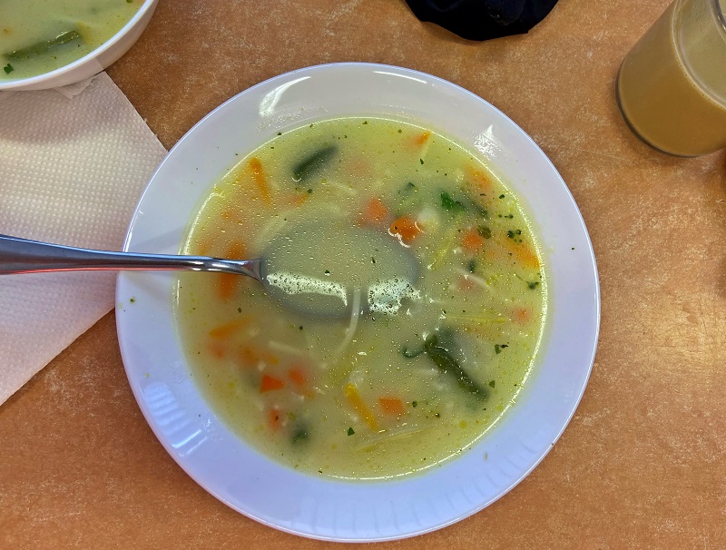 Posiłek regeneracyjny: w końcu będę chwalić. Biuro zawodów jest w szkole, zatem stołówka też. Podano smaczną szkolną zupę a nie zabarwioną wodę. Mogliśmy poczuć się znowu jak w szkole. Do tego była dla każdego dostępna kawa i herbata.
